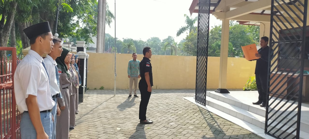 Setelah adanya sesi perkenalan kemudian Siswa magang tersebut diminta untuk mengikuti Apel rutin hari Senin yang telah menjadi budaya disiplin dilingkup kantor Bawaslu Bojonegoro.