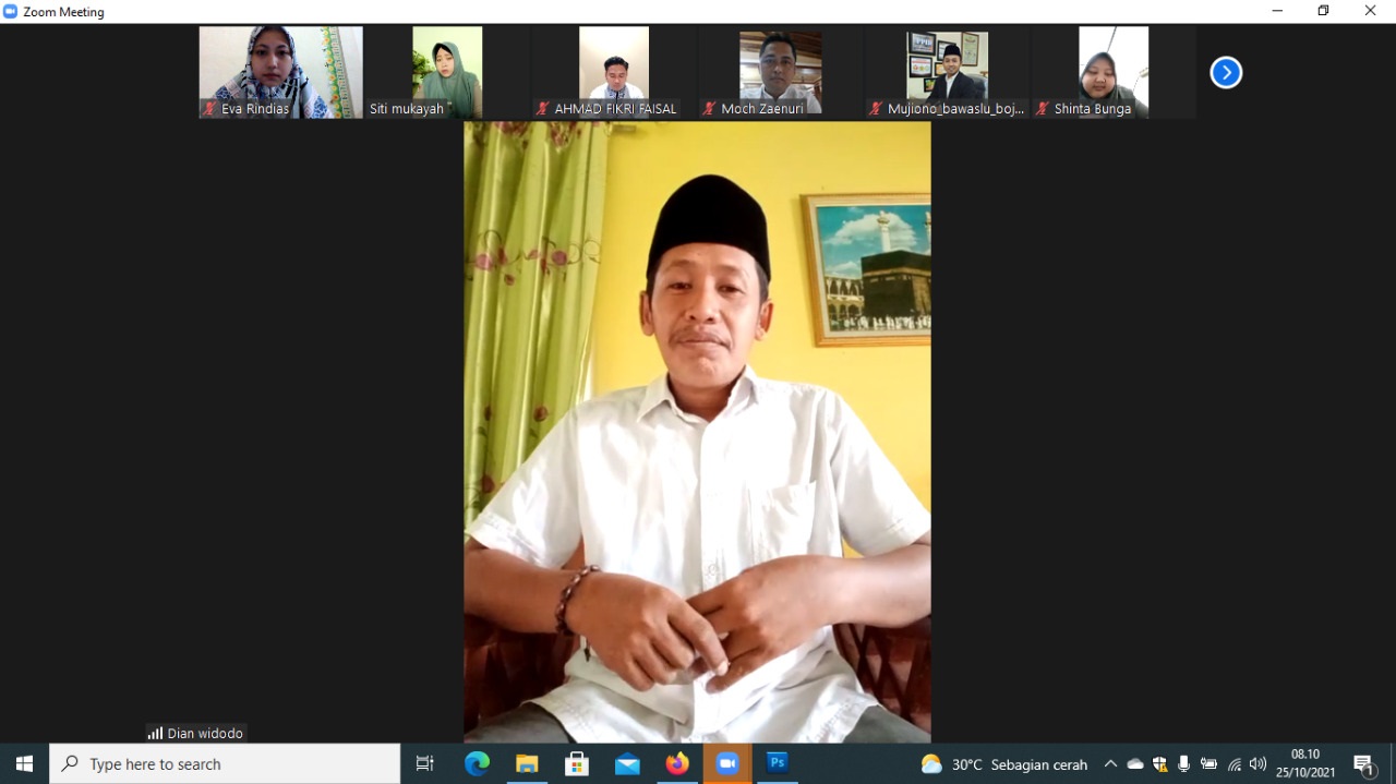 Senin (25/10/2021) Bawaslu Kabupaten Bojonegoro melaksanakan agenda apel pagi rutin secara daring. Pembina apel yakni Koordinator Divisi Penanganan Pelanggaran, Dian Widodo.