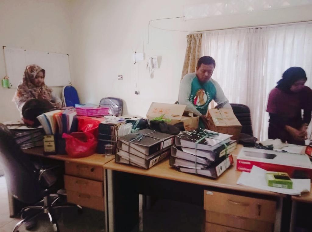 Pimpinan bersama jajaran staf Bawaslu Bojonegoro gotong royong memindahkan setiap berkas dan semua perabotan. Berkas dan semua perabotan dipindahkan dari kantor sementara ke kantor asal.