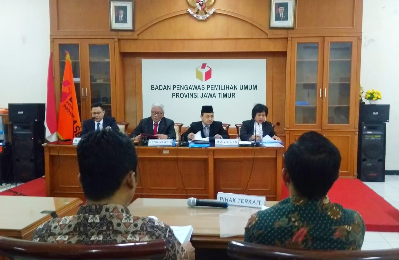 Tanggal 5 September 2019, bertempat di Kantor Bawaslu Provinsi Jawa Timur, telah dilaksanakan sidang dugaan pelanggaran Kode Etik Penyelenggara Pemilu (KEPP) oleh Dewan Kehormatan Penyelenggara Pemilu (DKPP) dengan Nomor Perkara 244-PKE-DKPP/VIII/2019. Sidang dipimpin oleh Ketua DKPP bapak Dr. Harjono, MCL, selaku Ketua Majelis bersama Tim Pemeriksa Daerah (TPD) yaitu bapak Hananto Widodo (unsur Masyarakat), Eka Rahmawati (unsur Bawaslu) dan Arbayanto (unsur KPU).