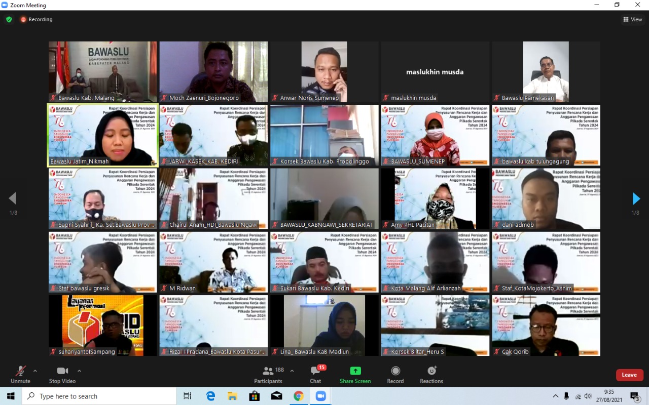 Rakor tersebut merupakan kegiatan yang diselenggarakan oleh Bawaslu Jawa Timur secara daring melalui aplikasi Zoom. Rakor diikuti oleh Ketua dan Anggota, Koordinatotor Sekretariat beserta Satu Staf Bawaslu Kabupaten/Kota se Jawa Timur.