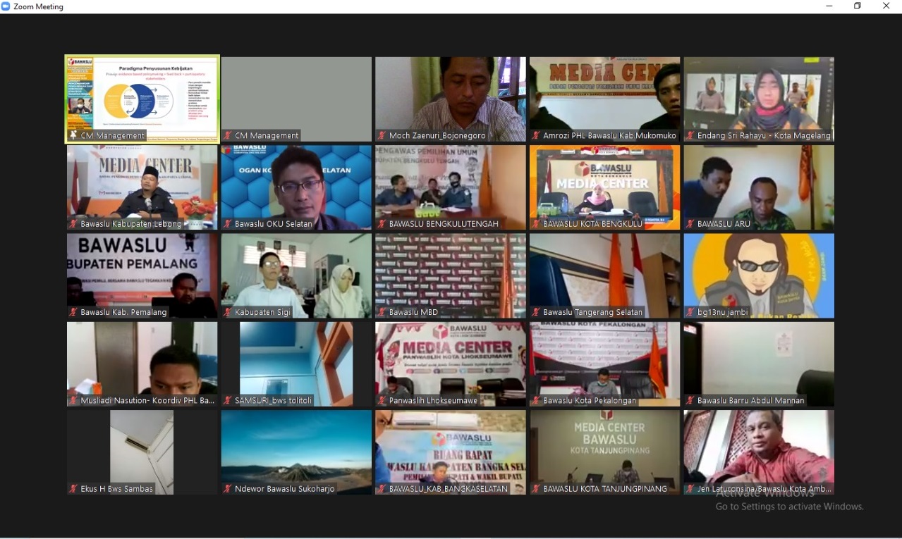 Bojonegoro, bojonegoro.bawaslu.go.id – Dalam rangka melaksanakan tugas, wewenang dan kewajiban pengawas pemilihan umum (pemilu) dalam menciptakan pemilu yang berintegritas di Indonesia, Bawaslu Bojonegoro mengikuti rapat virtual dalam rangka koordinasi Nasional penyusunan standar tata laksana pengebangan pengawasan dan kebijakan strategis tahapan pemilu 2024.