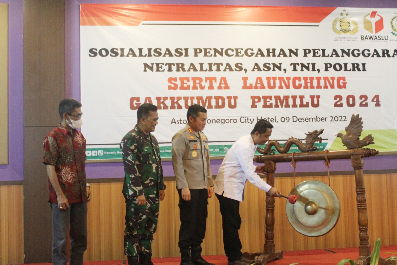 Acara kemudian dilanjutkan dengan launching Sentra Gakkumdu dengan simbolis pemukulan gong. Lalu dirangkai dengan kegiatan sosialisasi pencegahan pelanggaran, netralitas ASN, TNI dan POLRI dengan materi yang disampaikan oleh Dr. Imam Fachruddin M.Si., Akademisi dan Dosen Universitas Kediri. Selanjutnya acara ditutup dengan penandatanganan nota kesepahaman atau MoU oleh Bawaslu Bojonegoro dengan Universitas Kediri