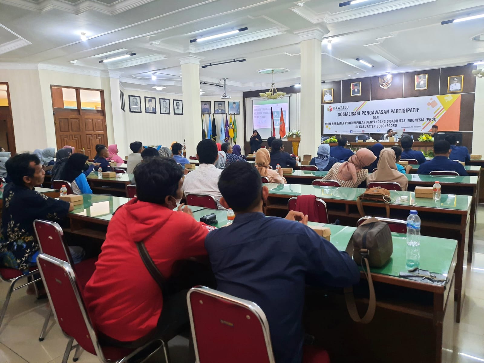 Bojonegoro, bojonegoro.bawaslu.go.id - Jumat (15/07/2022) Bawaslu Bojonegoro melaksanakan Sosialisasi Pengawasan Partisipatif dan MoU bersama Perkumpulan Penyandang Disabilitas Indonesia (PPDI) di Kabupaten Bojonegoro. Kegiatan dilaksanakan di Ruang Meliwis Putih Bakorwil Bojonegoro. Kegiatan ini dihadiri oleh PPDI berjumlah 35 orang dan Gerkatin berjumlah 5 orang.