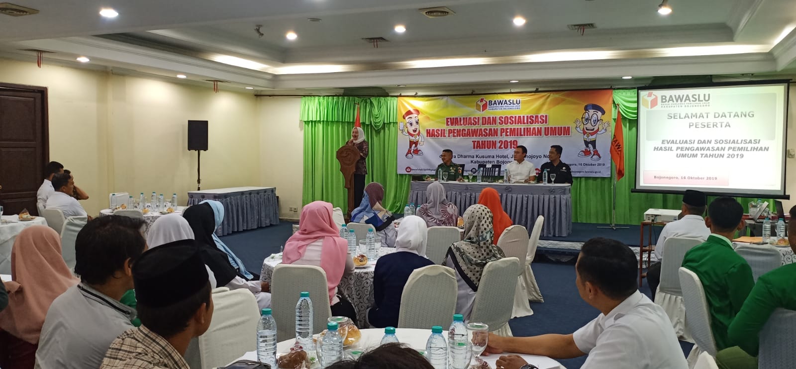 Bojonegoro, bojonegoro.bawaslu.go.id. Acara yang dibuka oleh Bupati Bojonegoro Dr. Hj. Anna Muawanah ini di hadiri oleh perwakilan Kodim 0813, Polres Bojonegoro juga dari berbagai elemen masyarakat mulai dari Partai Politik, Ormas, Omek, LSM sampai dengan santri dari pondok pesantren di Bojonegoro. Adapun acara ini bertempat di Griya Dharma Kusuma Hotel, Jl. Trunojoyo No.2-4, Kabupaten Bojonegoro. Rabu (16/10/2019)