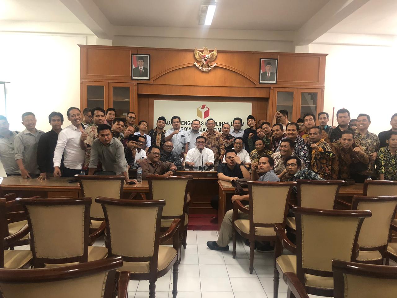 Tampak hadir juga kordiv Divisi Hukum, Data dan Informasi, Purnomo Satriyo Pringgodigdo, Divisi Penindakan Pelanggaran Bawaslu Provinsi Jawa Timur, Muh. Ikhwanudin Alfianto dan Kepala Bagian Temuan dan Laporan Pelanggaran Bawaslu Republik Indonesia (RI), Yusti Erlina.