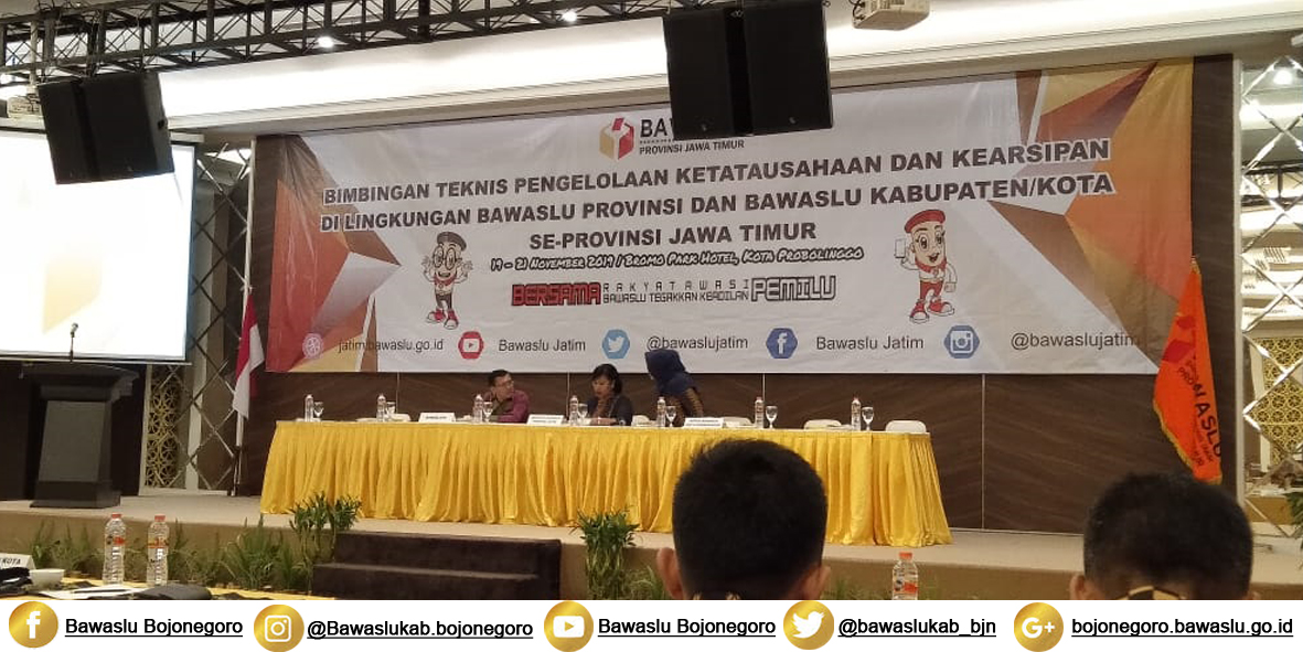 Kota Probolinggo. bojonegoro.bawaslu.go.id. Dalam bimtek yang dilakukan di Bromo Park Hotel Jl. Dr. Sutomo No. 70, Tisnonegaran, Kecamatan Kanigaran, Kota Probolinggo ini Waller Lumban Gaol mengatakan bahwa Bawaslu wajib memelihara arsip sebagai bukti pertanggung jawaban pada arsip-arsip yang dimiliki.