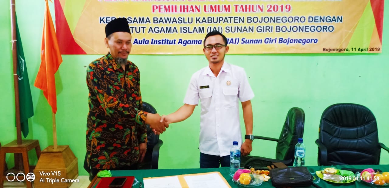 Acara yang dilaksanakan Kamis (11/4/19) di aula IAI Sunan Giri Bojonegoro tersebut merupakan kerjasama Bawaslu Bojonegoro dengan Kampus IAI Sunan Giri Bojonegoro.