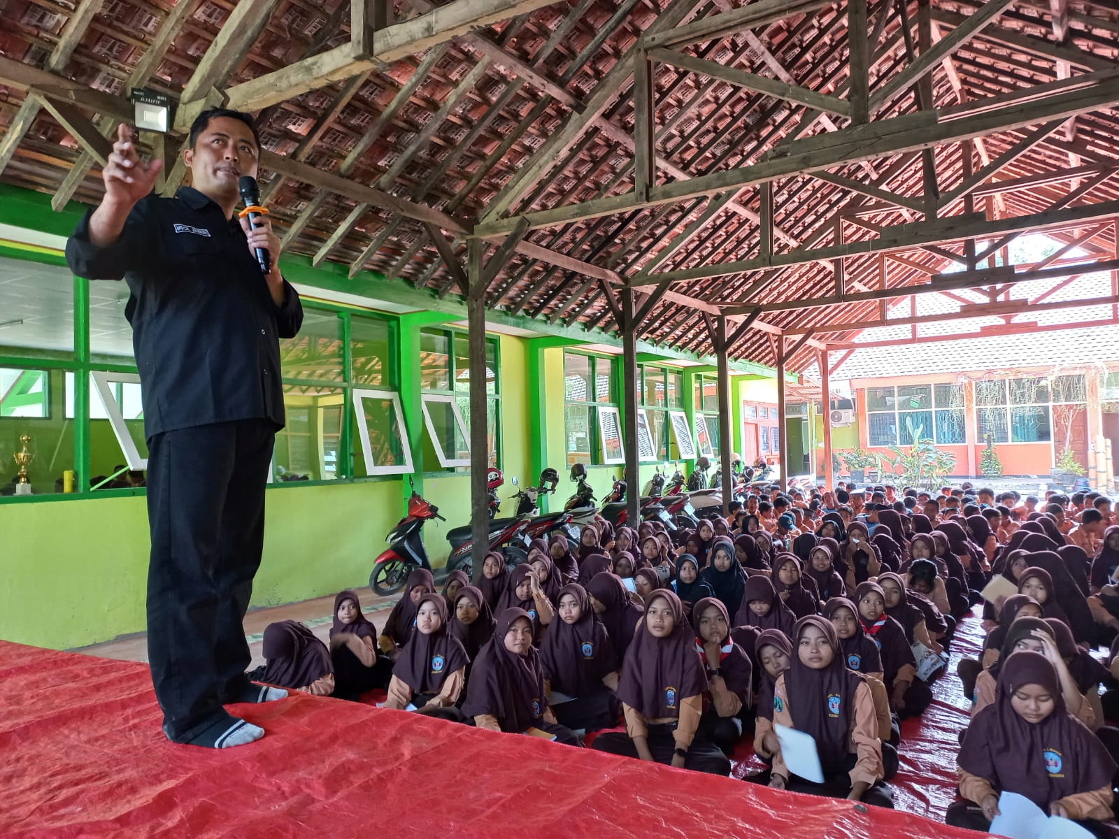 Bersama Siswa SMPN 1 Ngasem, Moch. Zaenuri Sampaikan Suara Demokrasi dan sejarah Pemilu.