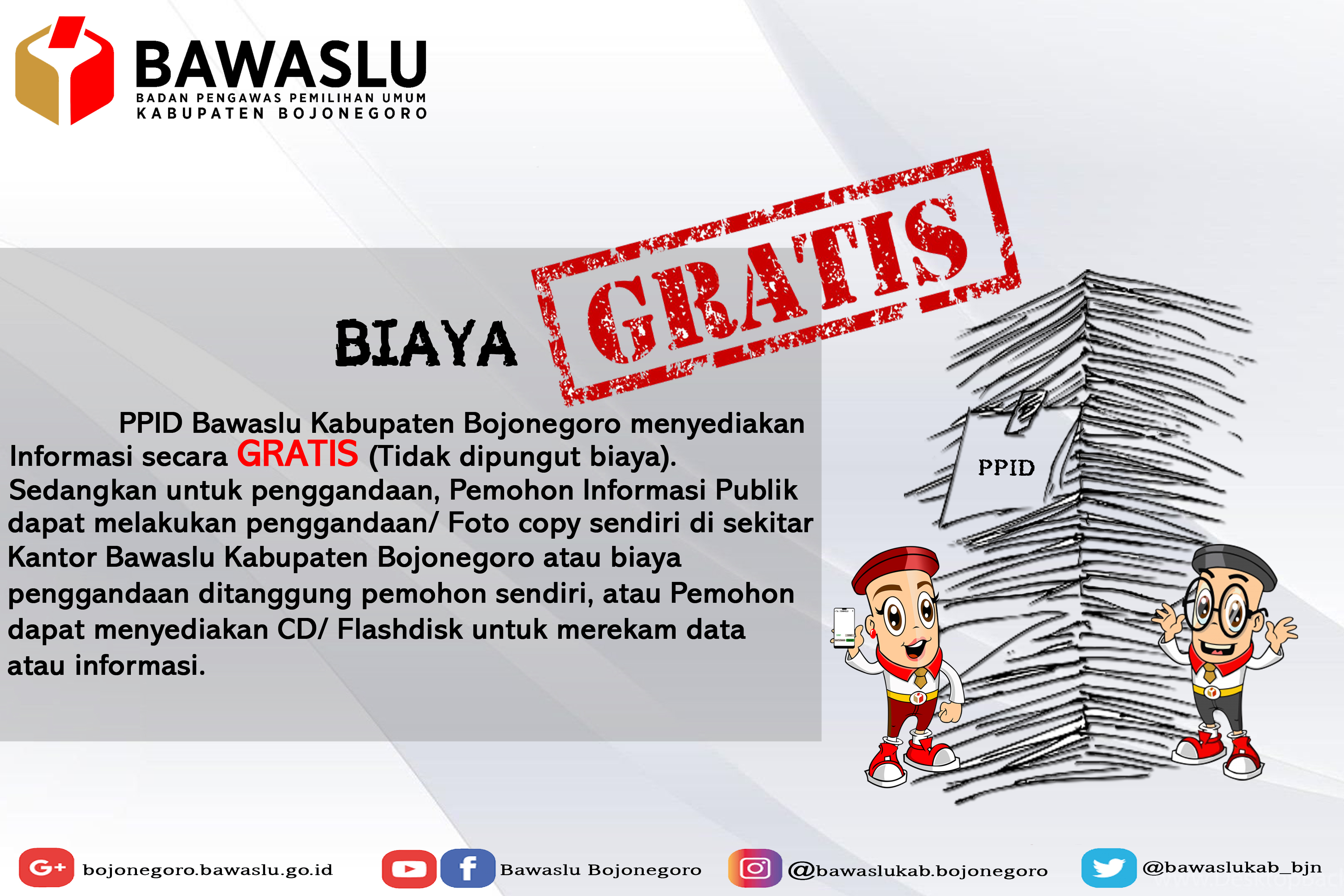 Biaya Permohonan Informasi humas | Senin, Januari 13, 2020 - 10:24 Tag PPID Share Berita Terkini humas Jumat, Januari 23, 2026 - 17:02 Anjangsana Bawaslu Bojonegoro, Merawat Kebersamaan dan Menguatkan Rasa Kekeluargaan humas Jumat, Januari 23, 2026 - 16:59 Badminton Jumat Sehati, Cara Bawaslu Bojonegoro Merawat Soliditas Internal humas Senin, Januari 19, 2026 - 16:12 Perkuat Tata Kelola dan Sinkronisasi Program, Bawaslu Bojonegoro Mantapkan Arah Kerja 2026 Lewat SEKATA (Senin Koordinasi dan Tata Kelola) Lihat Lainnya