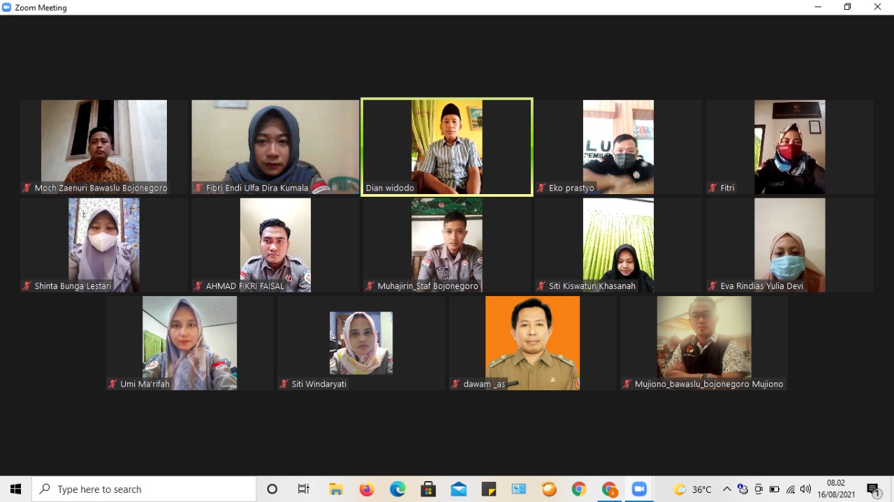 Bojonegoro, bojonegoro.bawaslu.go.id – Senin (16/08/2021) Seperti biasa, Bawaslu Bojonegoro masih menerapkan apel rutin hari Senin pagi. Apel harus selalu terlaksana meskipun belum bisa tatap muka. Jarak jauh bukan penghalang Bawaslu dalam menjalankan tugas sebagaimana mestinya. Hal tersebut disampaikan oleh Koordinator Divisi Penanganan Pelanggaran Bawaslu Bojonegoro, Dian Widodo saat menyampaikan amanat apel.