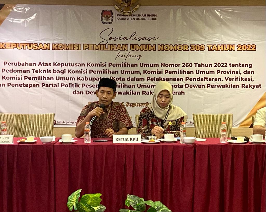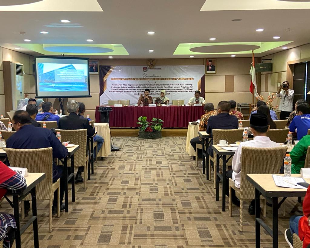 Hal tersebut Ia sampaikan saat menjadi Narasumber dalam kegiatan sosialisasi keputusan KPU nomor 309 Tahun 2022 tentang perubahan atas keputusan nomor 260 Tahun 2022 tentang pedoman teknis bagi KPU, KPU Provinsi dan KPU Kabupaten/Kota dalam pelaksanaan pendaftaran verifikasi dan penetapan partai politik peserta pemilihan umum anggota Dewan Perwakilan Rakyat (DPR) dan Dewan Perwakilan Rakyat Daerah (DPRD).