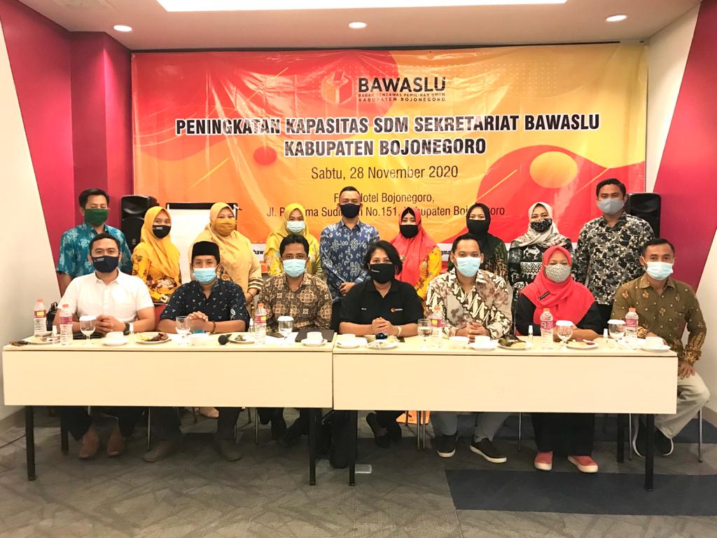 Bojonegoro, bojonegoro.bawaslu.go.id – Sabtu (28/11/2020) Dalam rangka peningkatan kapasitas SDM Bawaslu Bojonegoro, Koordinator Divisi Organisasi Bawaslu Jatim menyampaikan terkait tata naskah dinas. Kegiatan bertempat di fave hotel Bojonegoro dan diikuti oleh seluruh jajaran staf Bawaslu Bojonegoro.