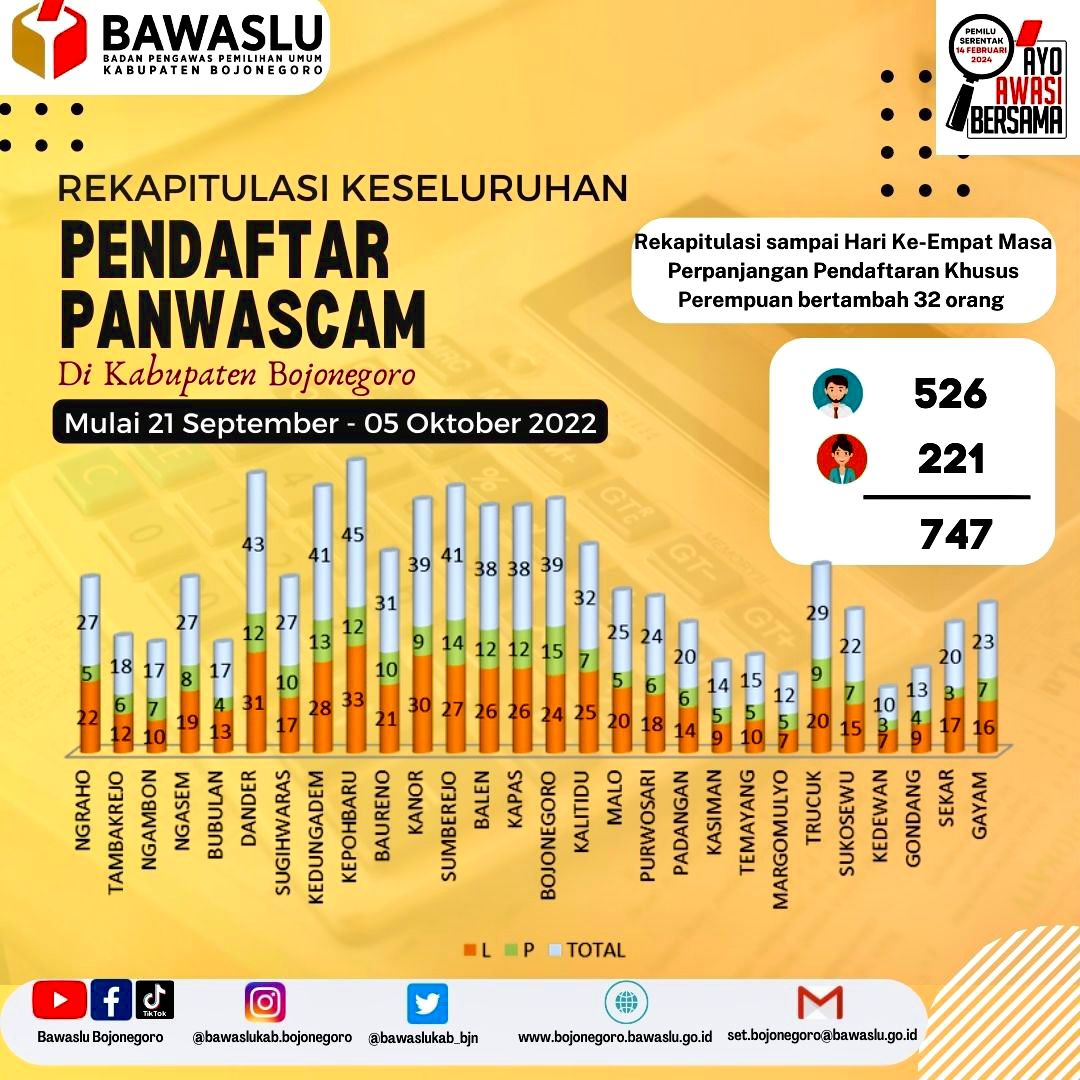 Jadi rekapitulas pendaftar mulai dari pendaftaran pertama hingga hari ke empat perpanjangan ini terdapat 747 pendaftar. Pendaftar tersebut terdiri dari 526 pendaftar laki-laki dan 221 pendaftar perempuan.