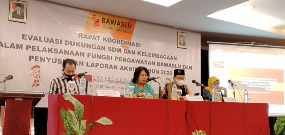 Kota Malang, bojonegoro.bawaslu.go.id – Tahun 2020 tinggal beberapa hari, menyikapi hal tersebut Bawaslu Bojonegoro menghadiri rapat koordinasi evaluasi dukungan SDM dan kelembagaan dalam pelaksanaan fungsi pengawasan bawaslu dan penyusunan laporan akhir kegiatan tahun 2020.