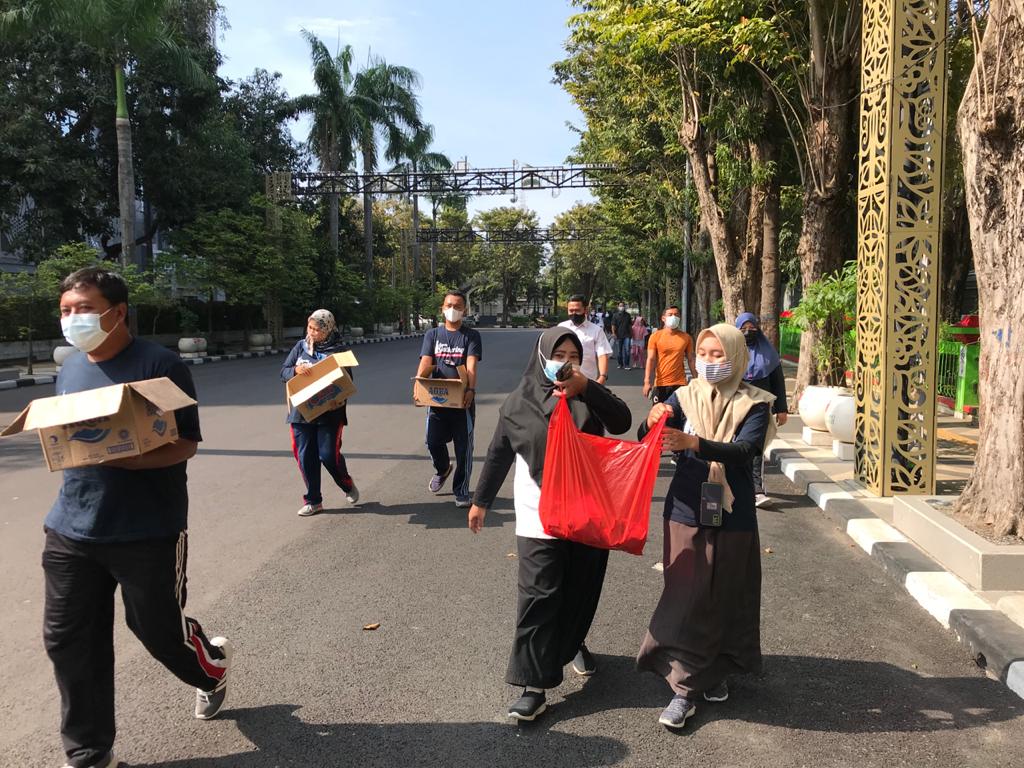 Bojonegoro, bojonegoro.bawaslu.go.id – Jumat pagi (26/03/2021) sebelum melaksanakan kegiatan di dalam kantor, Bawaslu Bojonegoro berbagi nasi bungkus kepada warga yang berada di sekitar Alun-Alun Bojonegoro.