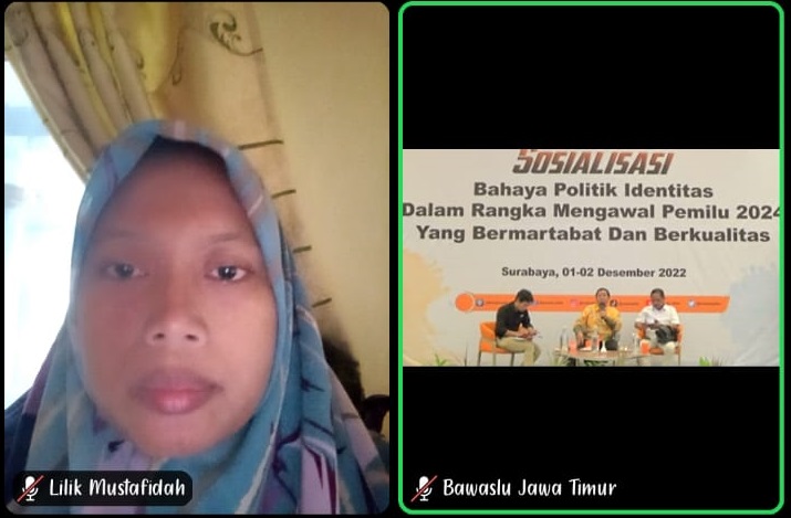 Bojonegoro, bojonegoro.bawaslu.go.id – Kamis (01/12/2022) Bawaslu Bojonegoro mengikuti kegiatan Sosialisasi Bahaya Politik Identitas dalam Rangka Mengawal Pemilu 2024 yang Bermartabat dan Berkualitas secara Daring. Hadir juga beberapa dari Panitia Pengawas Pemilu (Panwaslu) Kecamatan di Kabupaten Bojonegoro.