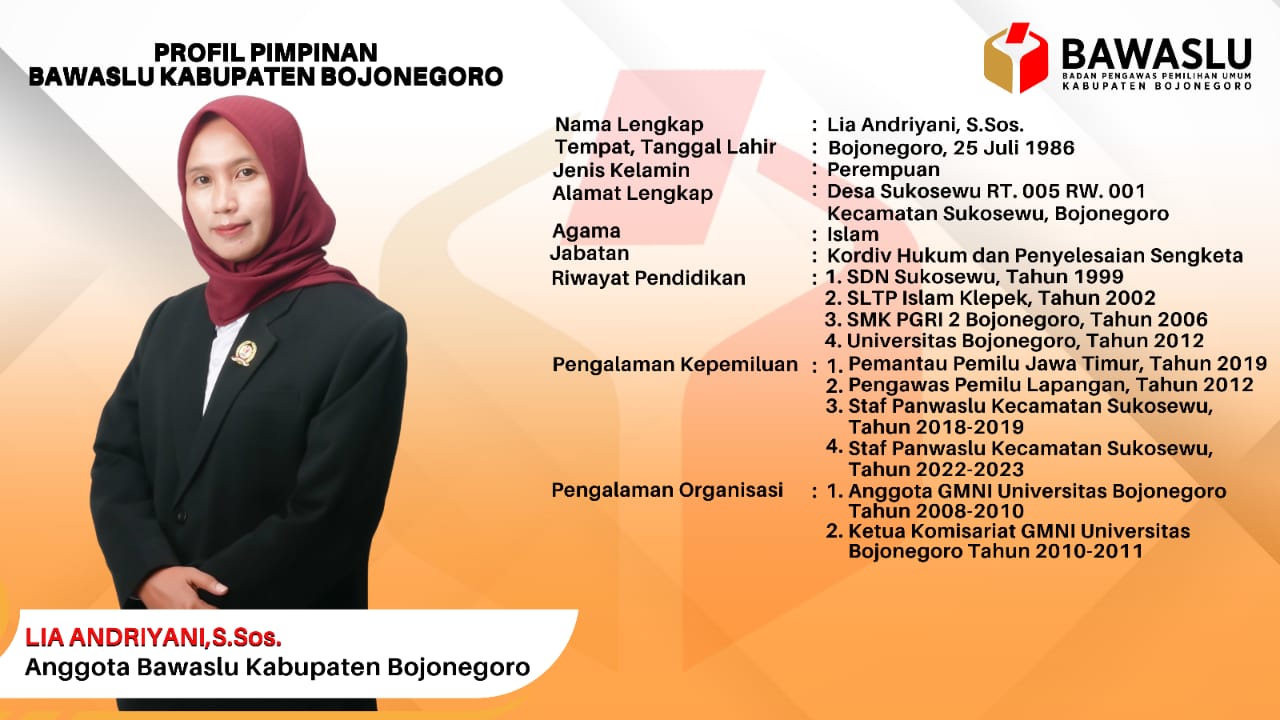 Lia Andriyani, S.Sos. (Anggota Bawaslu Kabupaten Bojonegoro)