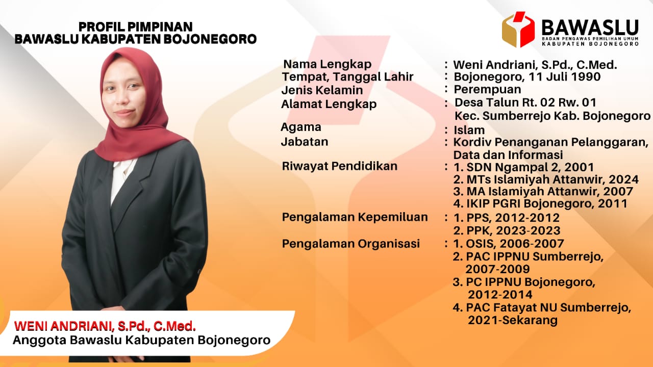 Weni Andriani, S.Pd. (Anggota Bawaslu Kabupaten Bojonegoro)