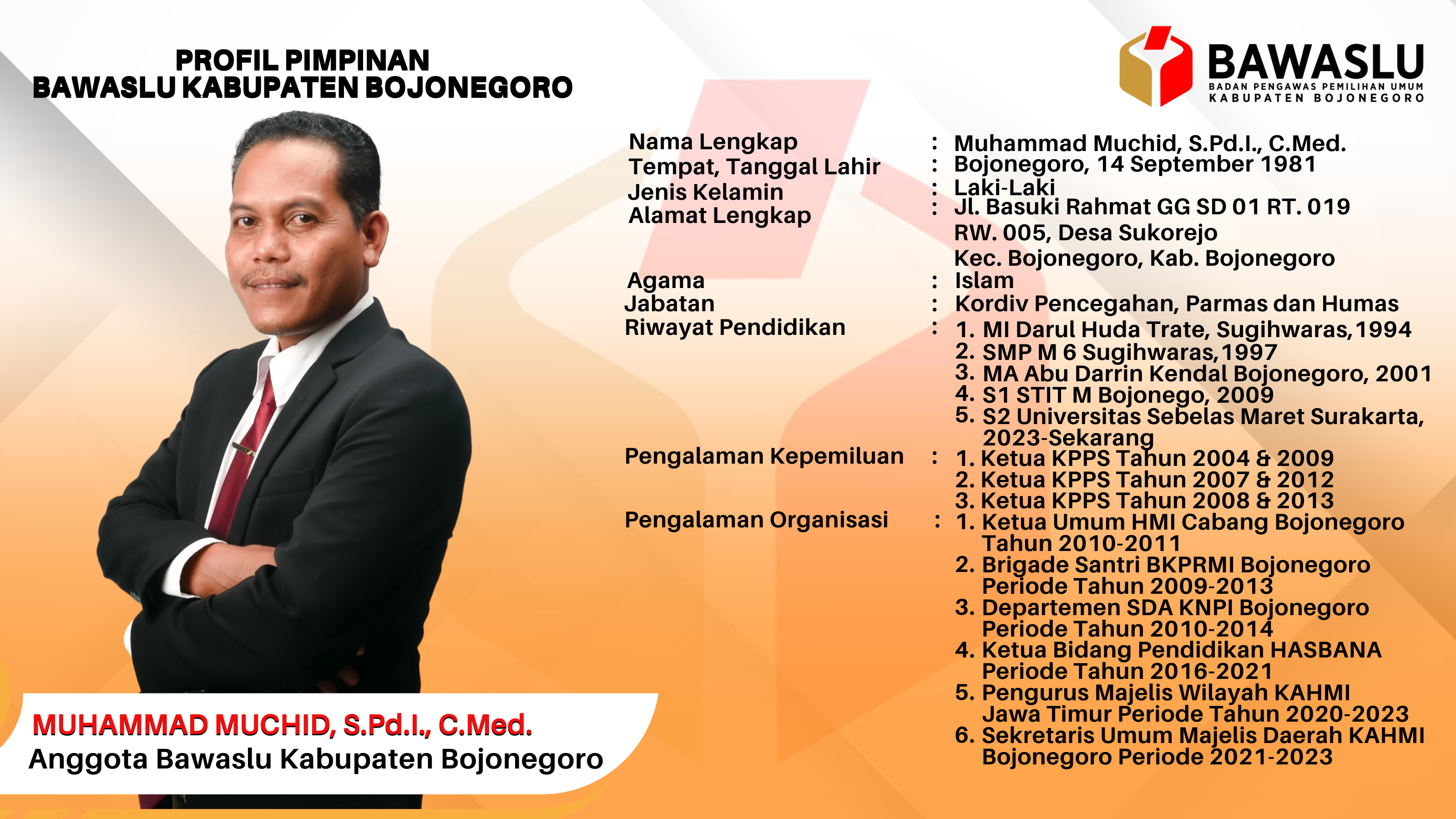 Muchammad Muchid, S.Pd.I (Anggota Bawaslu Kabupaten Bojonegoro)