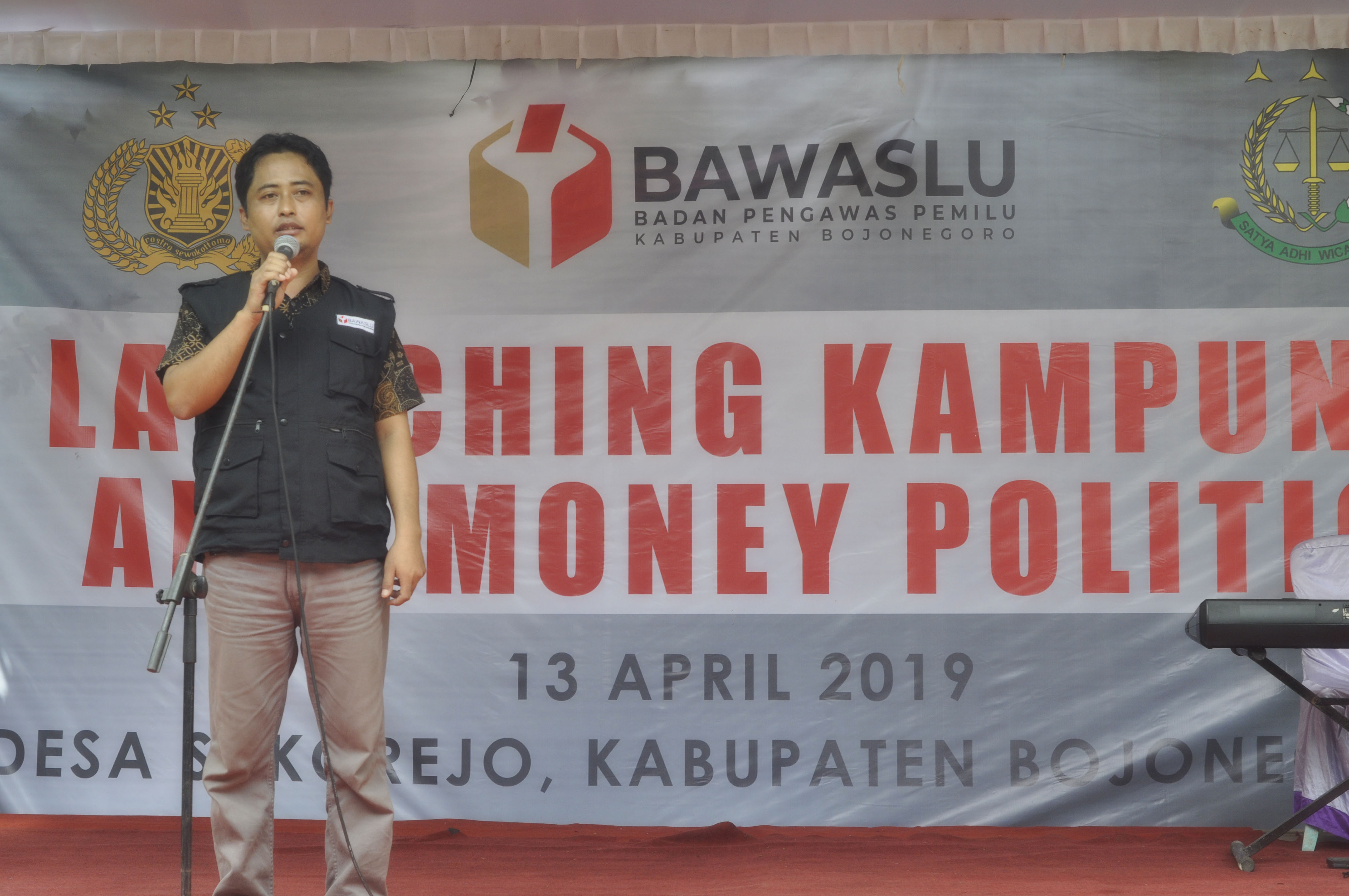 Bojonegoro, Pemilihan Umum (Pemilu) tinggal menghitung hari Badan Pengawas Pemilihan Umum (Bawaslu) Bojonegoro Sabtu (13/04/19) selenggarakan Launching Kampung Anti Money Politic.