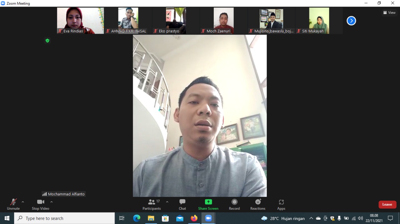 Senin (22/11/2021) Bawaslu Kabupaten Bojonegoro melaksankan apel pagi yang secara rutin dilakukan secara daring. Pembina apel yakni Koordinator Sumber Daya Manusia dan Organisasi Bawaslu Bojonegoro, Mochammad Alfianto yang diikuti Komisioner dan Jajaran Sekretariat Bawaslu Bojonegoro.