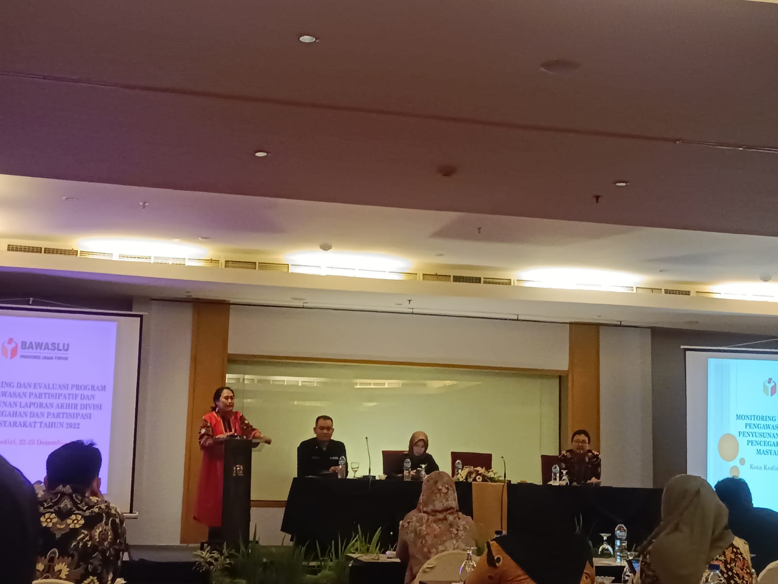 (Jl. Jaksa Agung Suprapto No.30, Mojoroto, Kec. Mojoroto Kota Kediri). Bawaslu Jawa Timur melaksanakan kegiatan "Monitoring dan Evaluasi Program Pengawasan Partisipatif dan Pendampingan Penyusunan Laporan Akhir Divisi Pencegahan Partisipasi Masyarakat".