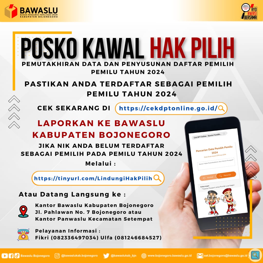 Laporkan Ke Bawaslu Kabupaten Bojonegoro, jika NIK Anda Belum Terdaftar Sebagai Pemilih pada Pemilu 2024, melalui :