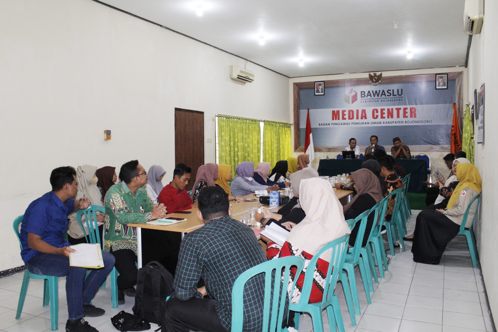 Bojonegoro, bojonegoro.bawaslu.go.id – Kamis (09/02/2023 dalam rangka Pengawasan Pemilihan Umum Tahun 2024 Tahapan Verifikasi Faktual Kesatu Dukungan Pemilihan Bakal Calon Anggota Dewan Perwakilan Daerah, Bawaslu Kabupaten Bojonegoro melaksanakan Bimbingan Teknis (Bimtek) bersama Panwaslu Kecamatan se-Kabupaten Bojonegoro. Bimtek bertempat di Ruang Media Center Bawaslu Kabupaten Bojonegoro.