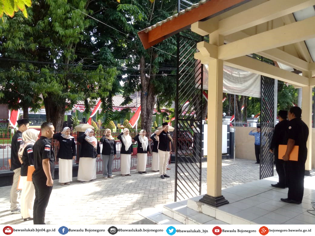 Bojonegoro, bojonegoro.bawaslu.go.id. Peringati hari kesaktian pacasila Bawaslu Bojonegoro gelar upacara bendera. Sekira pukul 07.30 WIB peserta upacara telah hadir. Terlihat hadir ketua dan anggota Bawaslu Bojonegoro beserta Koordinator Sekretariat sekaligus jajaran staf Bawaslu Bojonegoro. Upacara digelar sesuai pedoman penyenggaraan upacara peringatan hari kesaktian Pancasila tahun 2019.