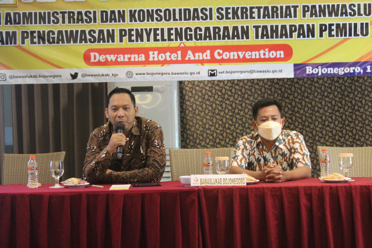 Bojonegoro, bojonegoro.bawaslu.go.id - Dalam rangka pengelolaan Administrasi keuangan dan Anggaran di lingkungan Sekretariat Bawaslu Kabupaten Bojonegoro pada Pemilu dan Pemilihan tahun 2024, Badan Pengawas Pemilihan Umum (Bawaslu) Bojonegoro menyelenggarakan kegiatan rapat fasilitasi pengelolaan administrasi dan konsolidasi Sekretariat Panwaslu Kecamatan dalam pengawasan penyelenggaraan tahapan Pemilu tahun 2024.