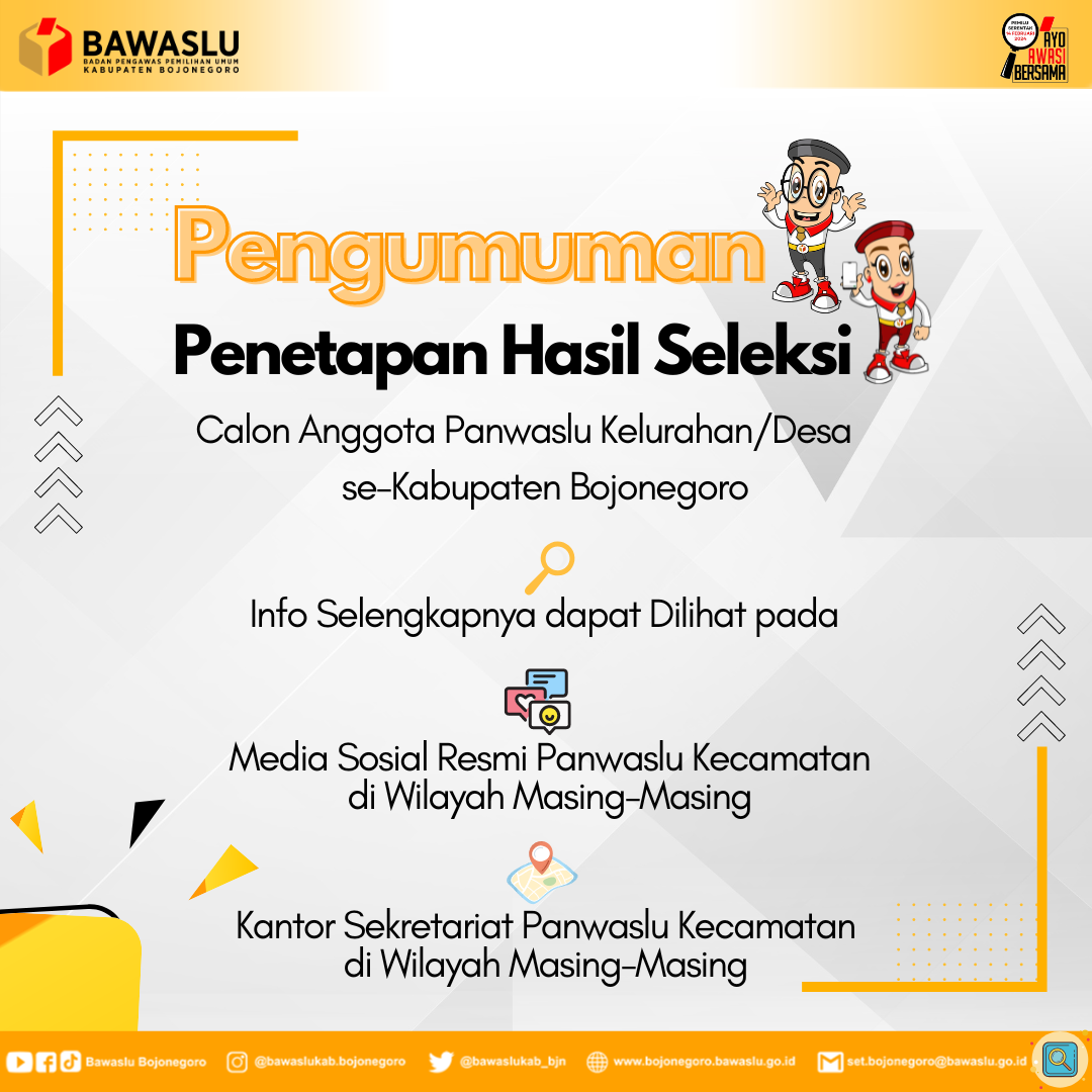 Pengumuman penetapan hasil seleksi calon Anggota Panwaslu Kelurahan/Desa (PKD) se-Kabupaten Bojonegoro, Sabtu (04/02/2023)