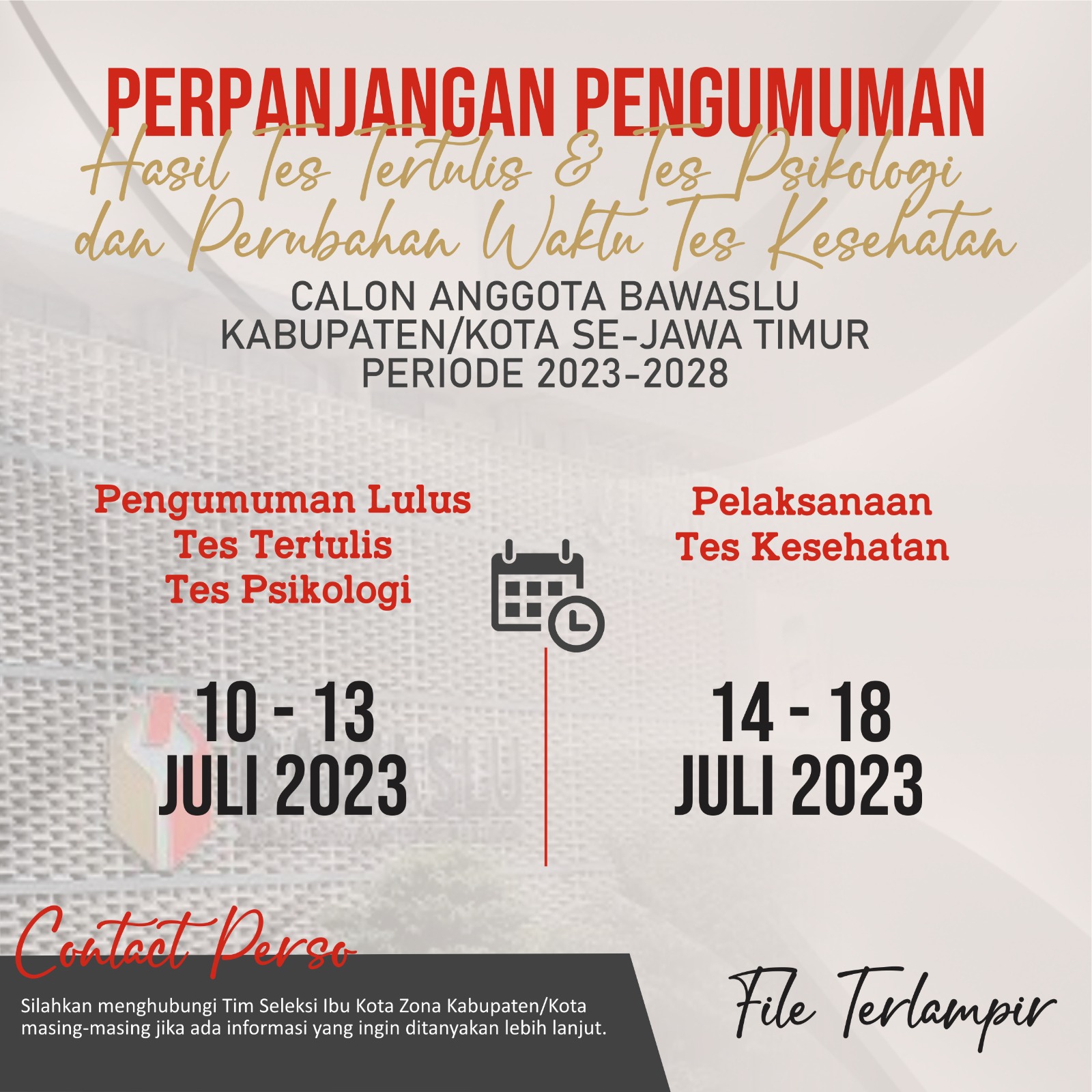 Perpanjangan Pengumuman Hasil Tes Tertulis dan Tes Psikologi dan Perubahan Waktu Pelaksanaan Tes Kesehatan