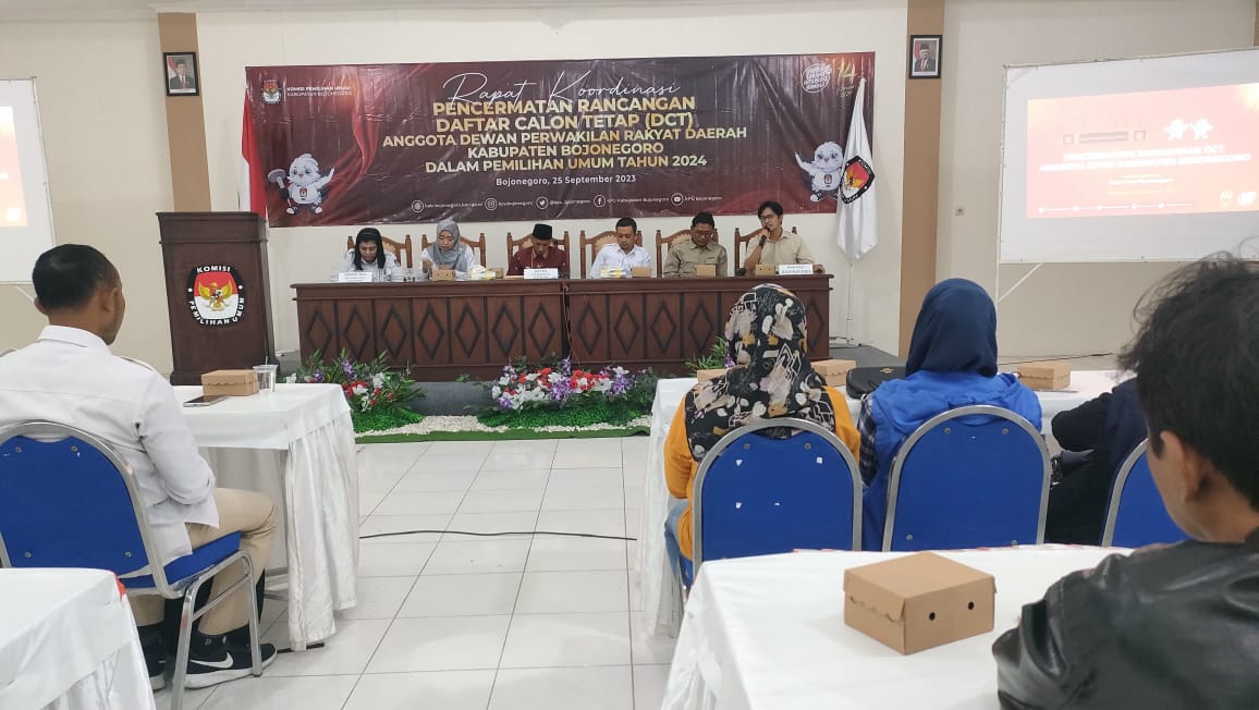 Bojonegoro, bojonegoro.bawaslu.go.id - Ketua Bawaslu Kabupaten Bojonegoro, Handoko Sosro Hadi Wijoyo hadir dalam rapat koordinasi Hadiri rapat koordinasi pencermatan DCT Anggota DPRD Kabupaten Bojonegoro Pemilu tahun 2024 yang diselenggarakan oleh KPU Bojonegoro.