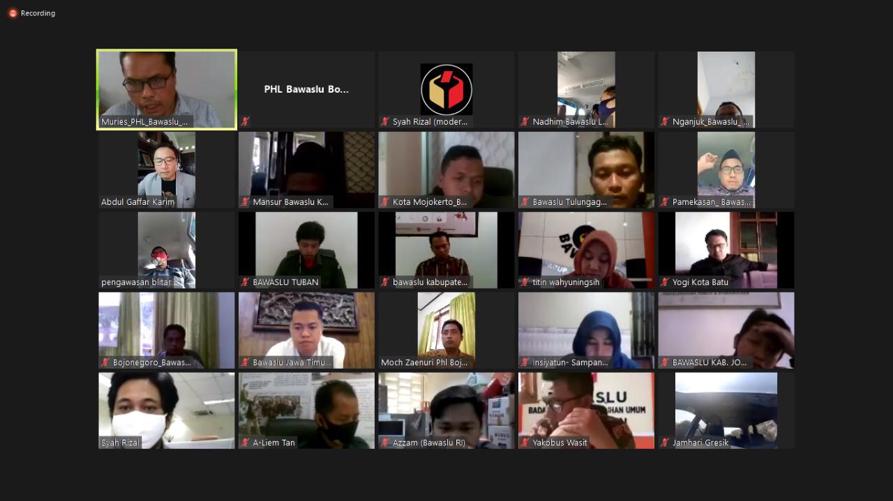 Selaku tim penulis, Bawaslu Bojonegoro diikuti oleh Koordinator Divisi Pengawasan, Moch. Zaenuri. Dalam kesempatan tersebut, Moch. Zaenuri menyampaikan bahwa dalam rapat zoom tersebut terdapat 2 kegiatan yaitu presentasi, Pembahasan dan diskusi. Pertama presentasi dilakukan pukul 13.00 hingga 14.00 dan selanjutnya pembahasan serta diskusi dilakukan pukul 14.30 hingga 15.30 WIB.
