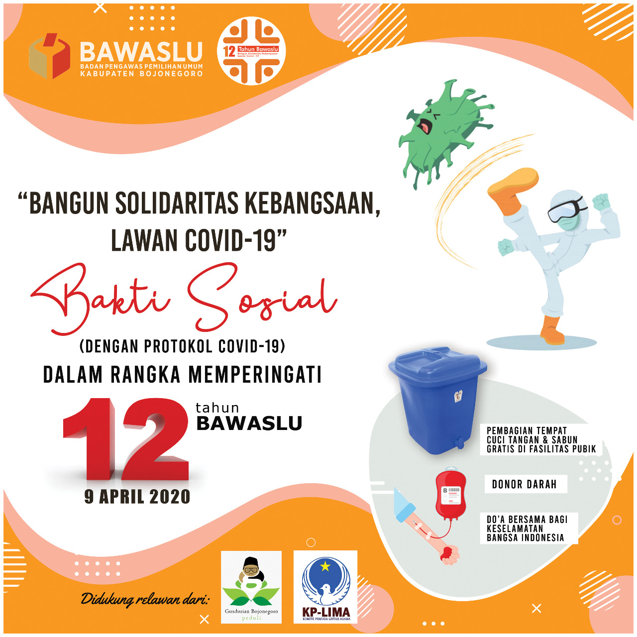 Bakti social yang akan dilaksakan tanggal 9 April 2020 tersebut nantinya akan diikuti oleh Pimpinan serta jajaran staf Bawaslu Bojonegoro. Untuk kegiatannya ada pembagian tempat cuci tangan dan sabun gratis di fasilitas publik, donor darah dan doa bersama bagi keselamatan bangsa Indonesia yang dilaksakanan mulai sekira pukul 09.00 WIB sampai selesai.
