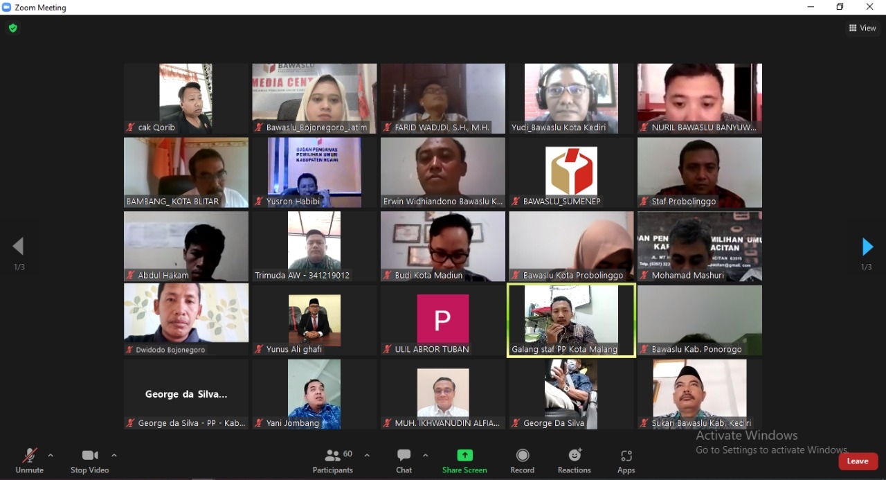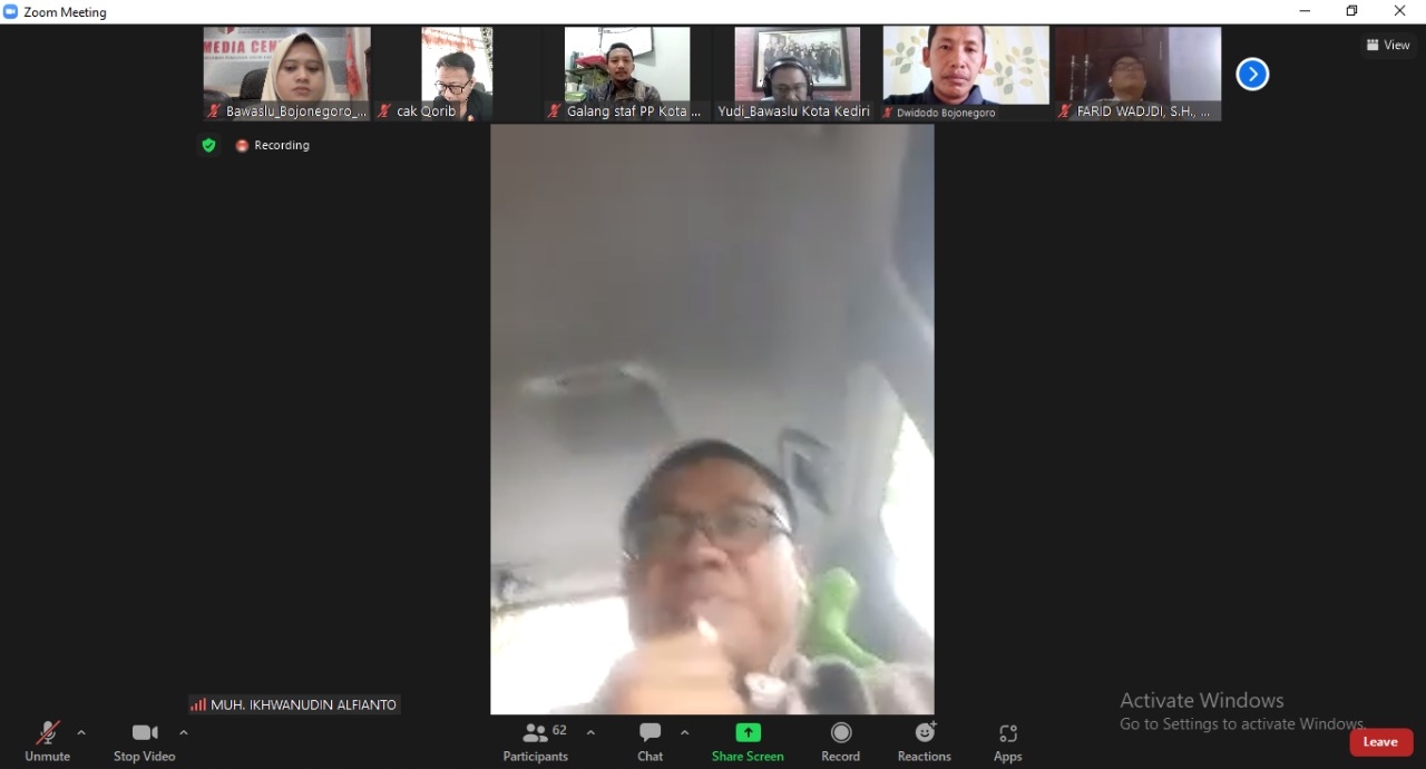 Diskusi dibuka dan dilanjut materi yang disampaikan oleh narasumber dari Bawaslu Kota Blitar, Bambang Arintoko dan dari Bawaslu Kota Malang Hamdan Akbar Safara. Bawaslu Bojonegoro di ikuti oleh Kordiv Penanganan Pelanggaran, Dian Widodo dan Staf.