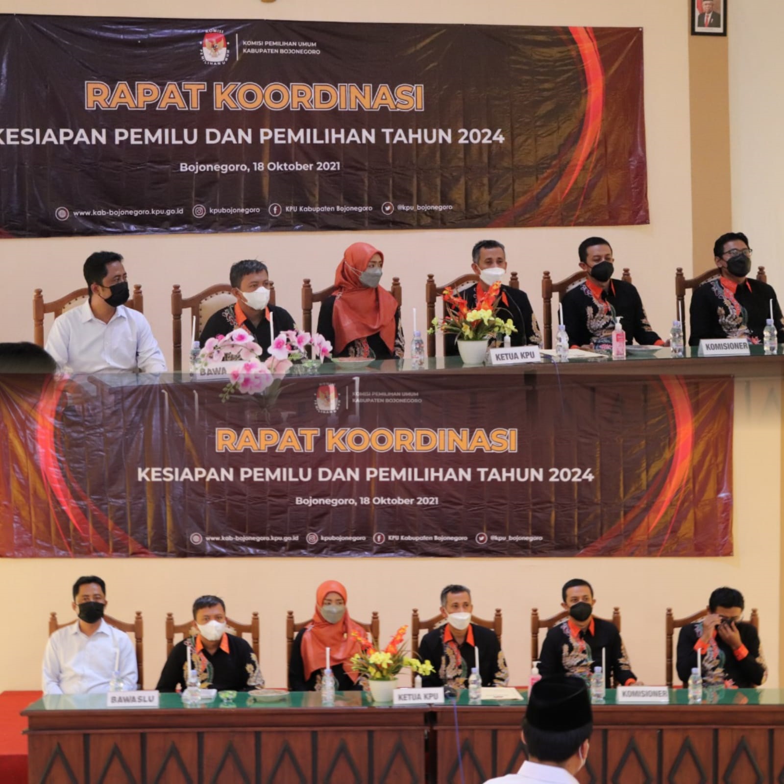 Senin (18/10/2021) Komisi Pemilihan Umum Kabupaten Bojonegoro melaksanakan kegiatan Rapat Koordinasi Kesiapan Pemilu dan Pemilihan Tahun 2024. Hadir Komisioner KPU Bojonegoro, Ketua Bawaslu Bojonegoro, Kordiv Penanganan Pelanggaran Bawaslu Bojonegoro serta Pengurus Partai Politik di Kabupaten Bojonegoro.
