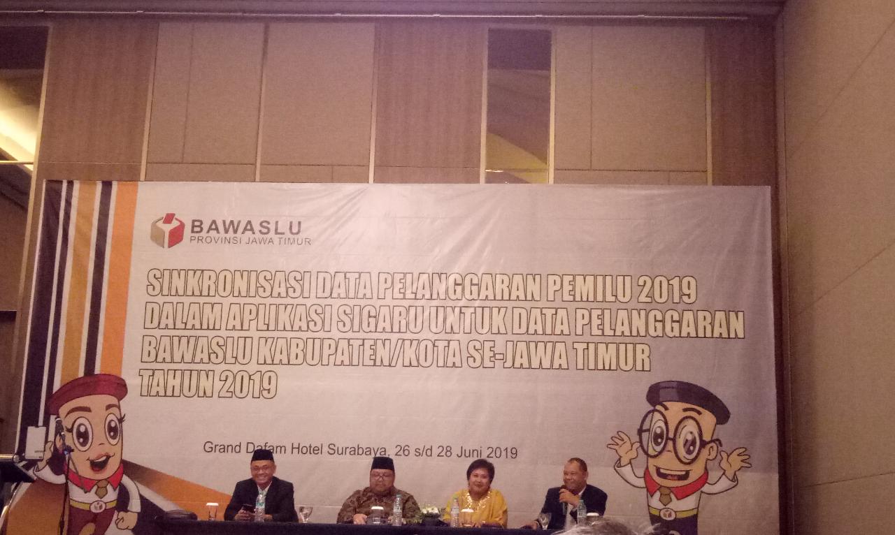 Surabaya, dalam rangka inventarisasi data penanganan pelanggaran secara digital, Bawaslu Provinsi Jawa Timur mengundang 38 Kabupaten/kota se Jawa Timur untuk melakukan Kegiatan singkronisasi data pelangggaran pemilu 2019. Digitalisasi ini diwujudkan dalam Aplikasi SIGARU bagi Bawaslu Kabupaten/ Kota se-Provinsi Jawa Timur pada tanggal 26 hingga 28 Juni 2019 bertempat di Grand Dafam Hotel Jl. Kayoon No. 4-10, Surabaya. SIGARU merupakan sistem informasi penanganan pelanggaran Pemilu yang diaplikasikan oleh Bawaslu Kabupaten/Kota untuk mempermudah pengarsipan data Penindakan Pelanggaran yang ada di Bawaslu Kabupaten/Kota.