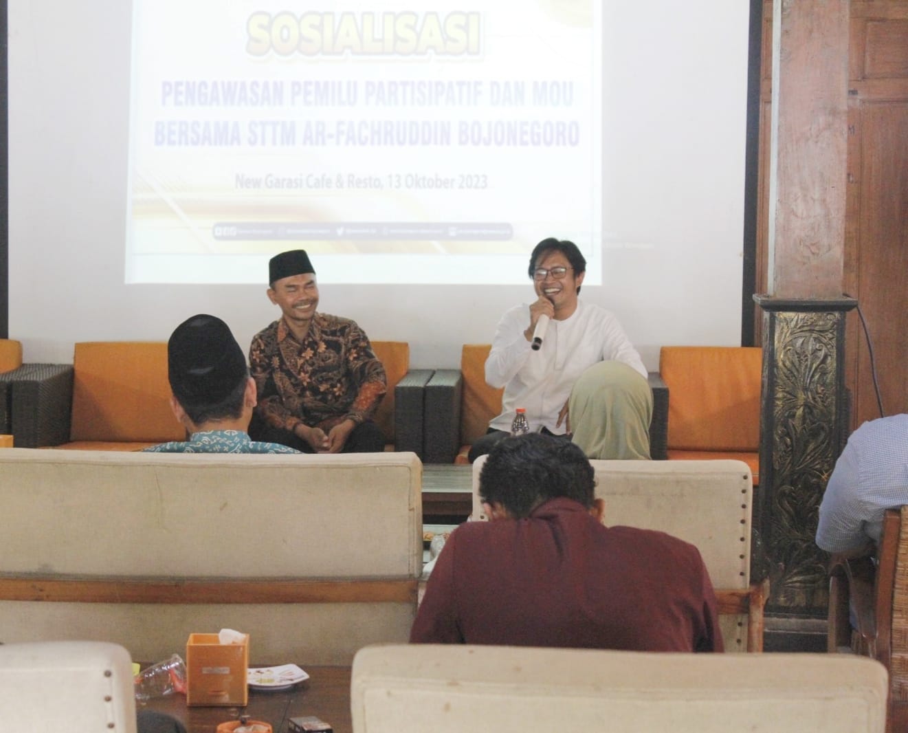 Dilanjut dengan penyampaian materi oleh Narasumber Dosen STTM Ar-Fachruddin Bojonegoro, M. Danial Bustomi, Anggota KPU Kabupaten Bojonegoro, Fatma Lestari dan Anggota Bawaslu Kabupaten Bojonegoro, Moch. Zaenuri.