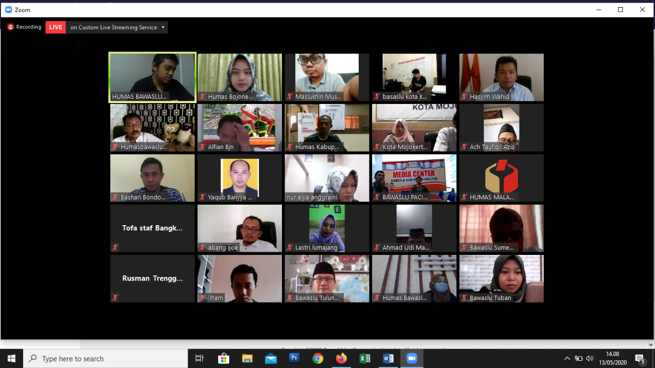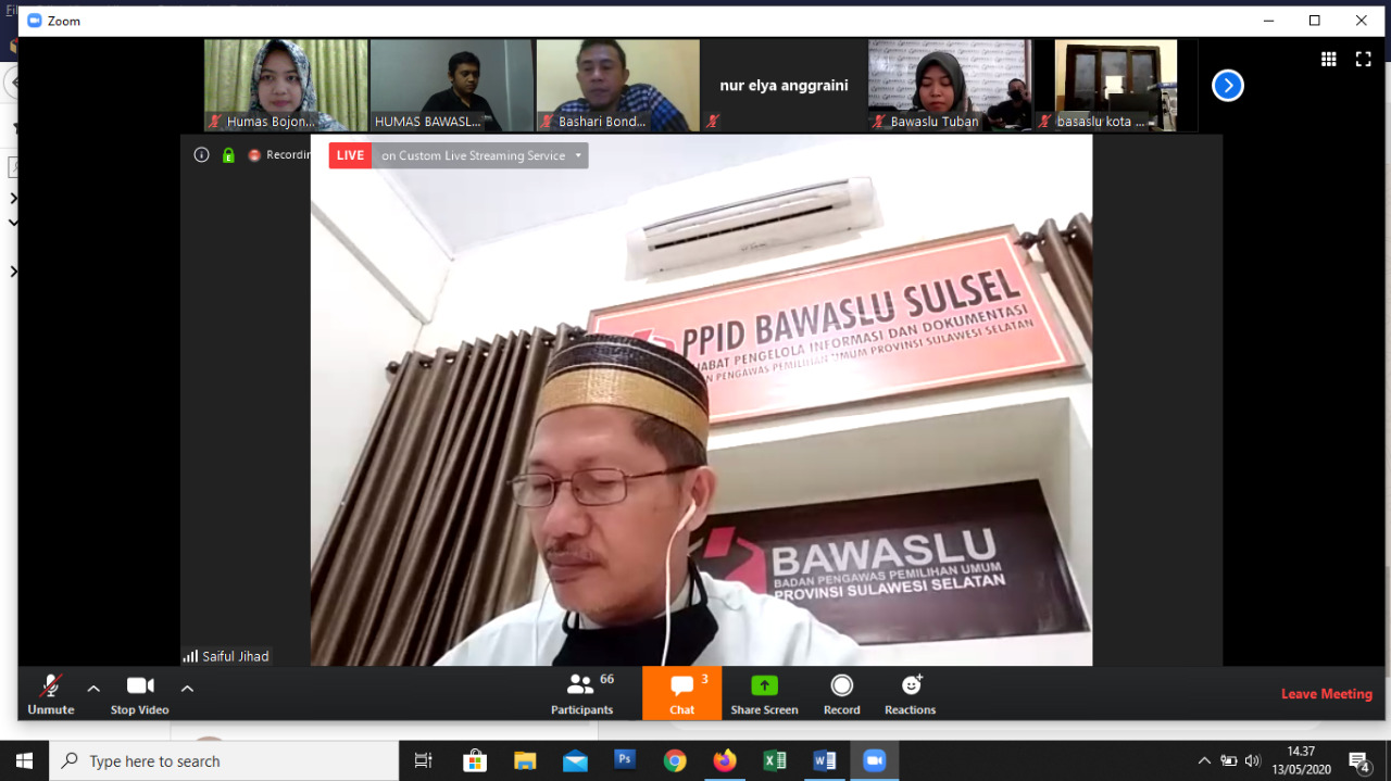 Sekira pukul 14.00 WIB ngabuburit dibuka Koordinator Humas Hubal Bawaslu Jatim, Nur Elya Anggraini yang kemudian dilanjut dengan pemaparan materi tentang Stategi Penguatan Hubungan Antar Lembaga oleh Anggota Provinsi Sulawesi Selatan, Saiful Jihad, Rabu (13.05/2020).