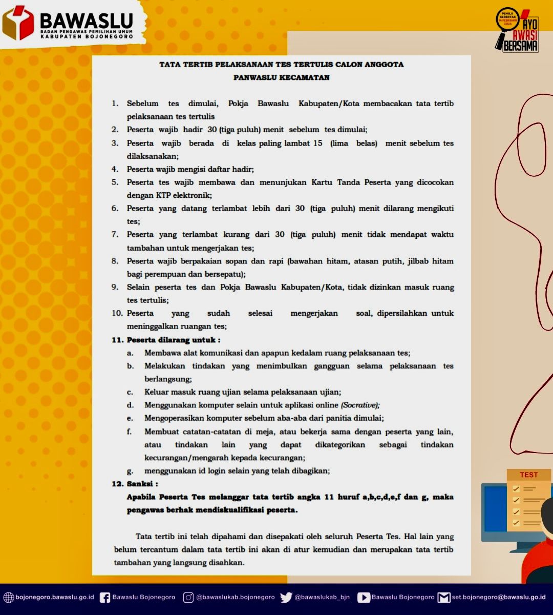 Info lebih lanjut ikuti selalu media sosial dan website Bawaslu Bojonegoro