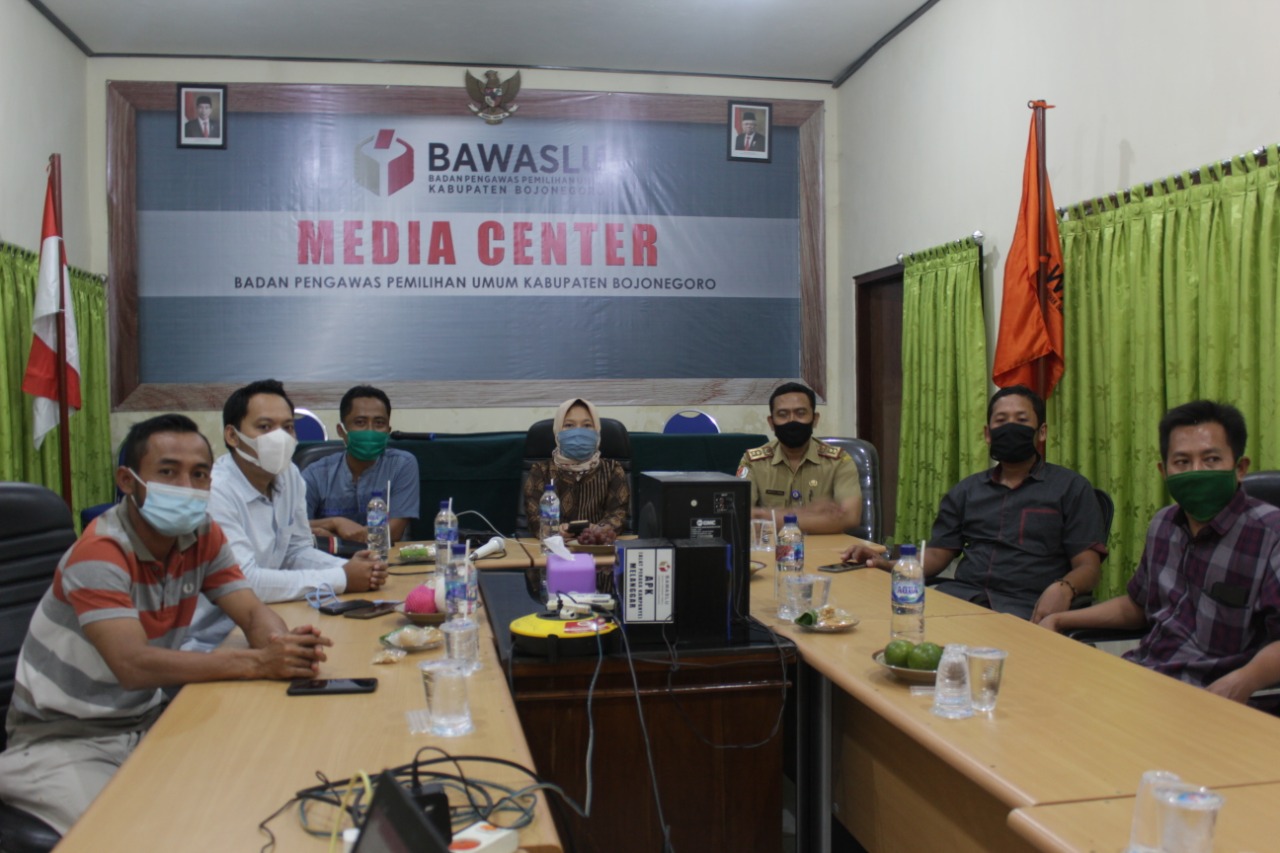 Dalam obrolan di ruangan tersebut disajikan dengan suasana lebih formal yaitu dengan adanya sambutan dari Ketua Bawaslu Bojonegoro kemudian Kordiv PJ Kehumasan dan dilanjut penyampaian dari Kordiv Humas Bawaslu Jatim, Nur Elya Anggraini yang dirangkai dengan tanya jawab oleh segena Pimpinan Bawaslu Bojonegoro.