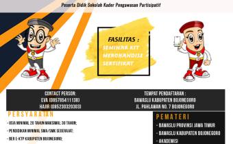 Bojonegoro. bojonegoro.bawaslu.go.id. Perekrutan calon peserta sekolah kader pengawasan yang diadakan oleh Badan Pengawas Pemilihan Umum (Bawaslu) Bojonegoro ini mendapatkan respon dan dukungan yang baik dari masyarakat, khususnya masyarakat Kabupaten Bojonegoro.