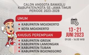 Pendaftaran Calon Anggota Bawaslu Kabupaten/Kota se-Provinsi Jawa Timur Periode 2023-2028.