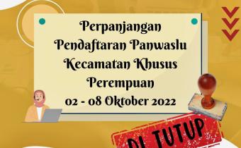 Bojonegoro, bojonegoro.bawaslu.go.id - Perpanjangan pendaftaran rekrutmen Panwaslu Kecamatan dalam Pemilu serentak tahun 2024 di Bojonegoro yang dilaksanakan mulai tanggal 2 hingga 8 Oktober 2022 telah berakhir.